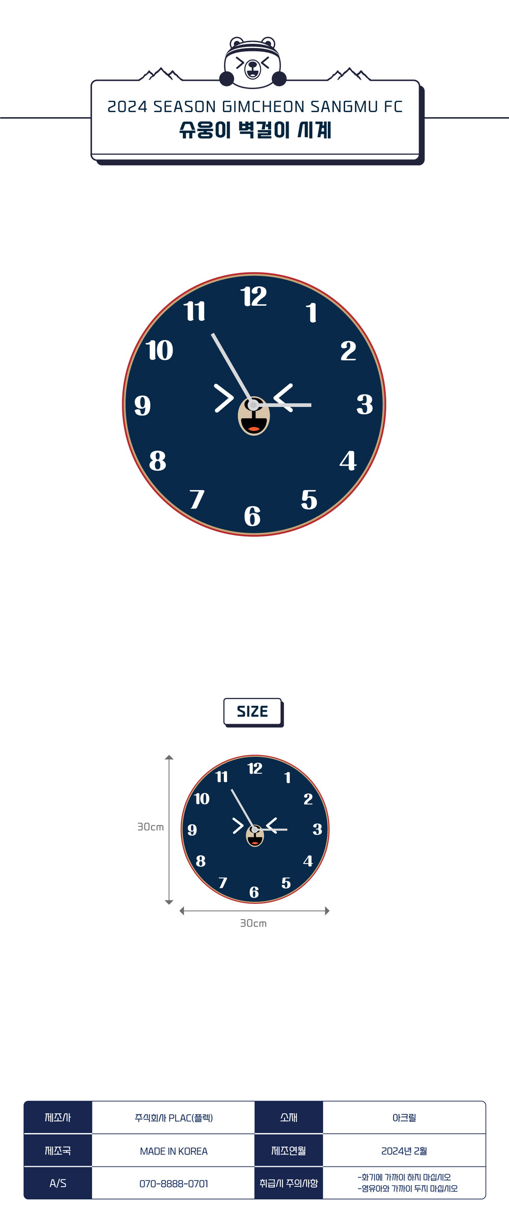 2024 김천상무FC 슈웅이 벽시계