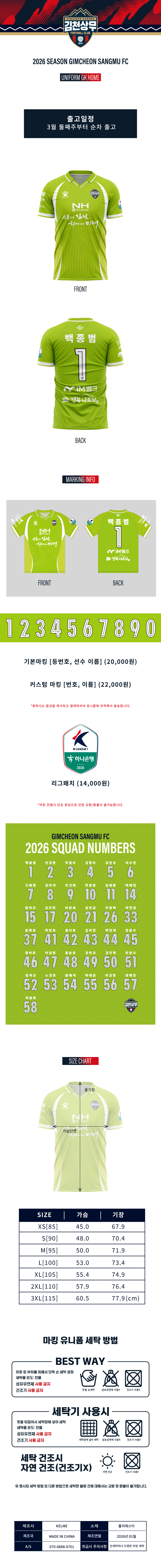 2026 김천상무FC GK 홈 어센틱 유니폼