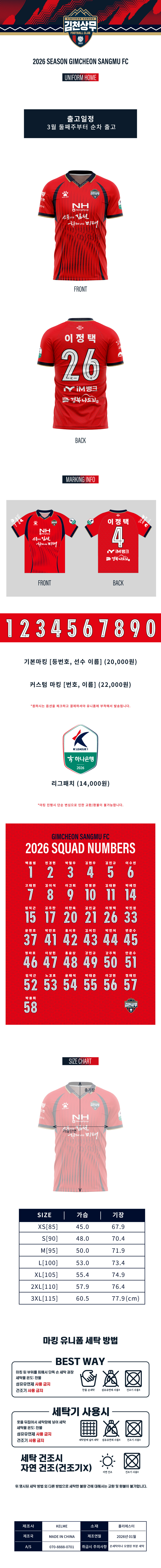 2026 김천상무FC 필드 홈 어센틱 유니폼