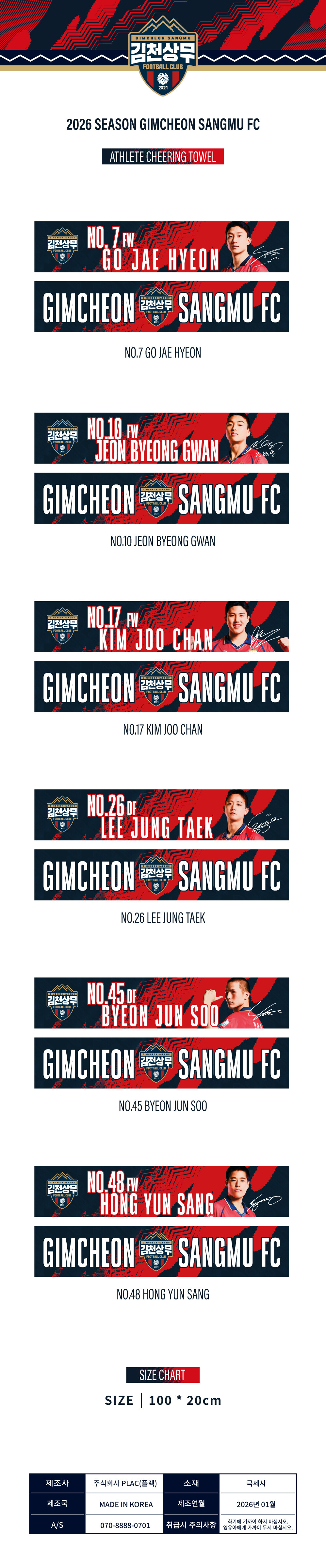 2026 김천상무FC 선수 응원타올